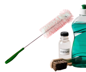 Pentru urmele ușoare poți folosi peria ta specială pentru curățat și un detergent de vase concentrat. Insistă acolo unde urmele sunt vizibile, clătește și verifică. Repetă procedura de 2-3 ori, iar dacă nu ești mulțumit de rezultat, treci la pasul următor.