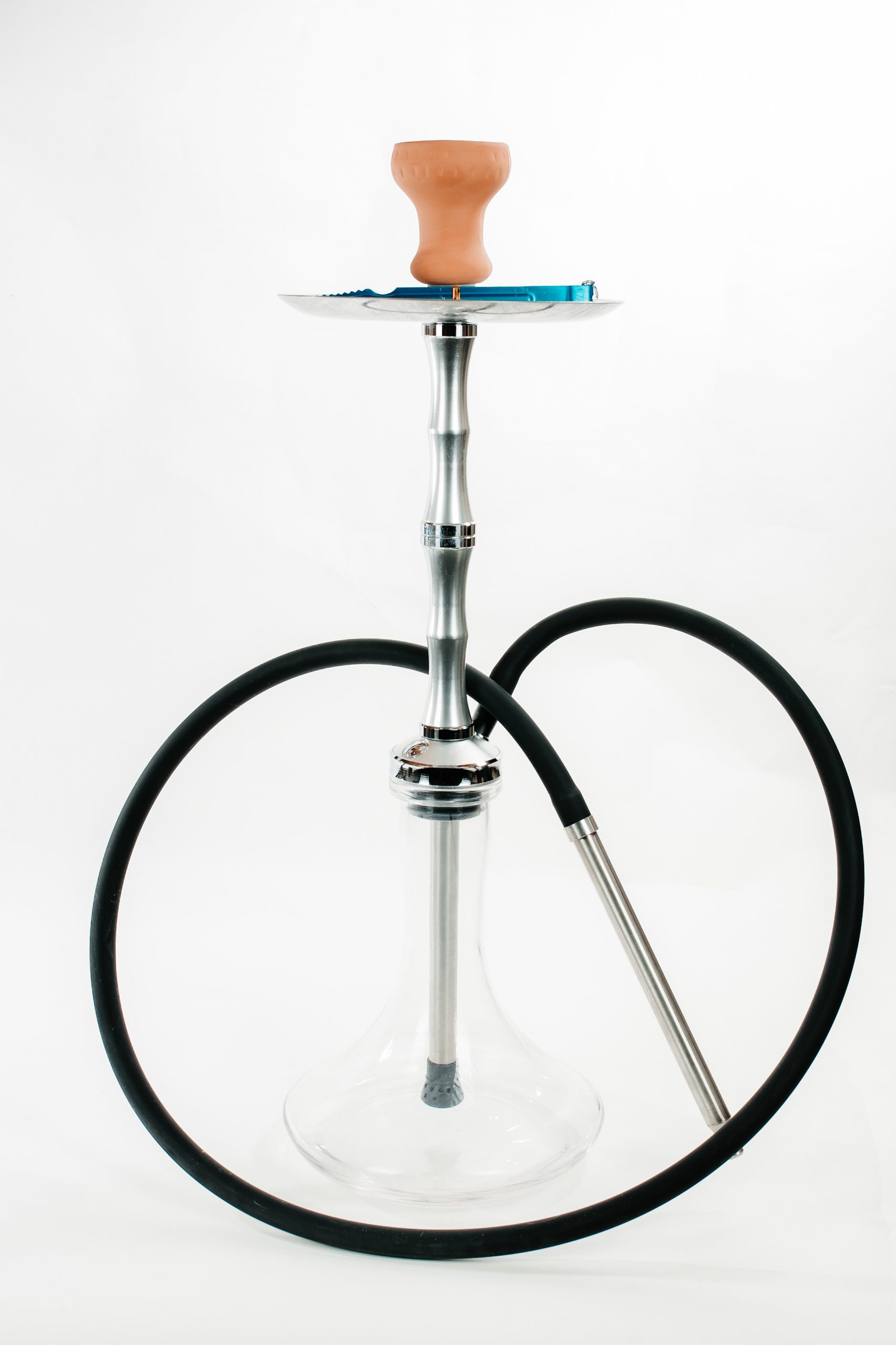 Narghilea KN PANDA – fabricată 100% din inox, are în compunere un difuzor soft, silențios. Vasul de sticlă este lucrat manual.